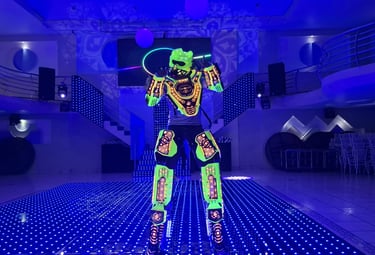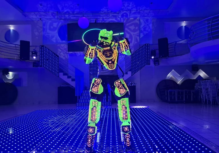 Haz que tu evento brille con nuestras pistas y robots iluminados