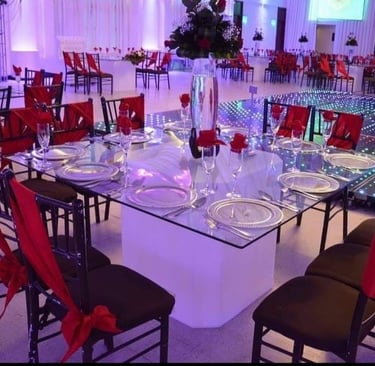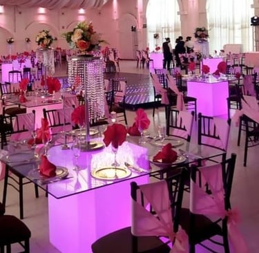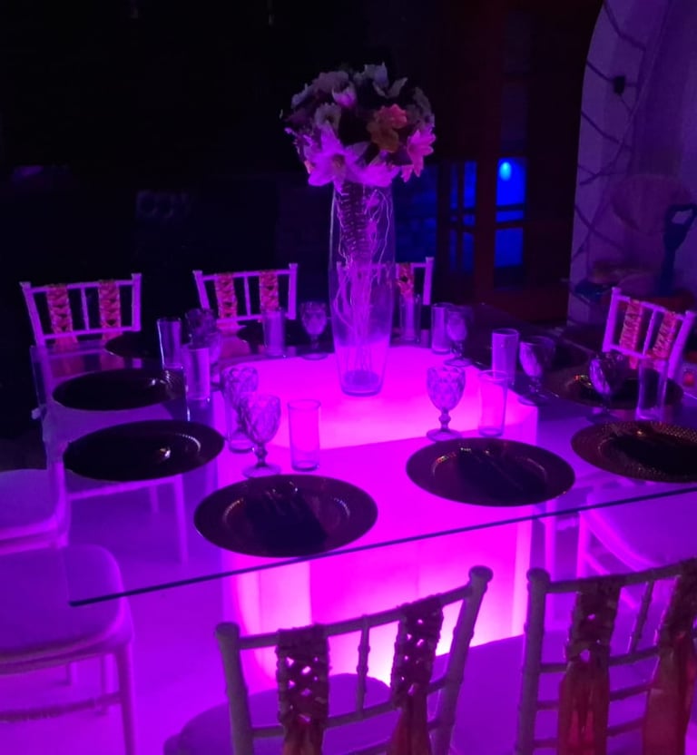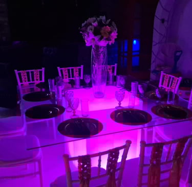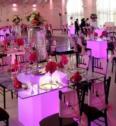 Las mesas iluminadas transformaron nuestra boda en un evento mágico, la iluminación LED creó un ambiente inolvidable.